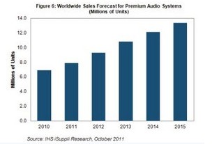 作為“熱門應(yīng)用”,音樂將繼續(xù)保留汽車音響本體的某些形式,比如放大器、接收器或喇叭。而且,高檔音響以前只限于豪華車和高檔車,而現(xiàn)在應(yīng)用范圍則得到拓展,也開始用于中檔車。這種策略是為了促進(jìn)高檔音響市場(chǎng)的規(guī)模穩(wěn)步增長(zhǎng),并提高其在汽車中的配售率。