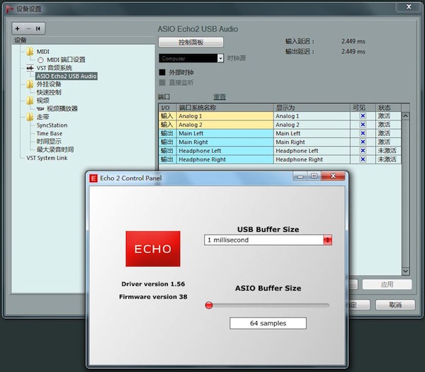 圖13:在PC版的Nuendo中,ECHO2的最低ASIO延遲表現為2.4毫秒