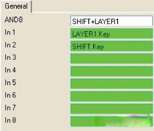 當然,邏輯編程不僅僅實現這么簡單的功能,由于操作面板只有16路推子,可信號源遠遠不止這個數,那就需要調音臺實現“翻層”的功能。同時為了防止誤操作,實現這個功能要使用組合鍵。那么,就可以用邏輯“與”(AND8)把所用到的組合鍵都成為它的輸入值,當這些鍵都按下時,調音臺就“翻層”,把第二層的信號源顯示在操作面板上(如圖6)。