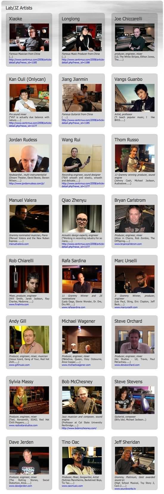 JZ 話筒全部代言人列表:http://www.jzmic.com/en/artists