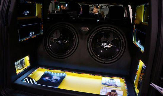 在一般我們見到的汽車音響系統或許并不那么起眼,它們只是為車主們駕駛時聆聽獲得更多的娛樂性,而對于聲音要求較高的車主則會選擇改裝較好的汽車音響系統。下面這輛來自豐田的吉普車改裝音響堪稱奢華配置,它是由Scosche Electronics提供的EFX音響系統,這套立體聲系統支持無線控制程序,帶有2個15英寸的低音單元,同時搭配3.5英寸兩路同軸單元2個;它提供2個2000瓦單聲道放大器和2個1200瓦四聲道放大器,配備有1法拉20伏的電容器2個,并且還有三個落地式的分頻器。更為讓人驚奇的是這款車的后背打開后,我們看見了非常驚奇的一面:它擁有兩個參考級的耳機、兩個頭戴式的耳機以及視頻播放系統,能夠帶給車主完美的音質及影音享受!