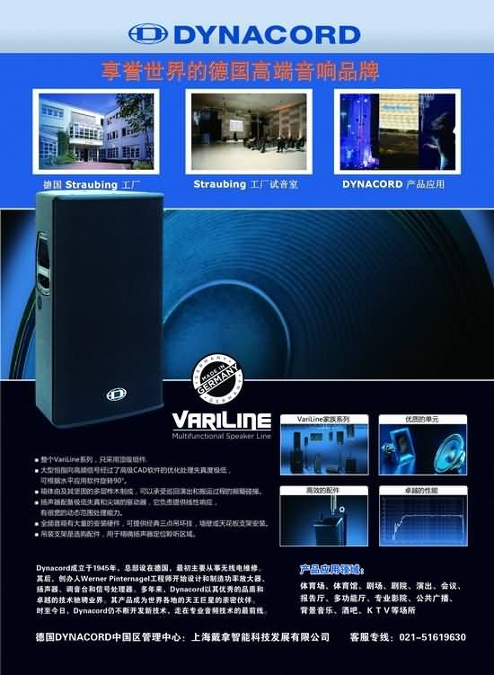 這家成立于 1945 年的德國Dynacord 公司,一直秉承為滿足世界前40 名樂隊的演出要求而研發產品的宗旨,始終走在娛樂音樂界的前沿。自2006 年加入世界500 強BOSCH 集團后,更是獲得BOSCH集團從資金,技術到市場等全方位的支持,令Dynacord® 這個具有純正德國血統的音樂品牌煥發出更耀眼的光彩。