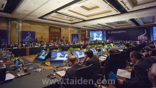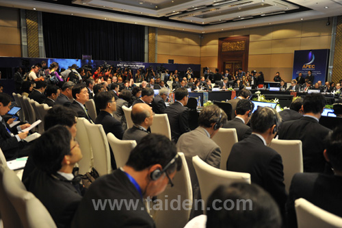在此前(10月3日-8日)召開的2013 亞太經合組織高官會上,為本次會議服務的會議系統同樣來自深圳臺電(TAIDEN),包括由40臺HCS-4100系列會議單元及16臺翻譯單元組成的全數字會議系統,約120臺數字紅外接收機組成的紅外線同聲傳譯系統。