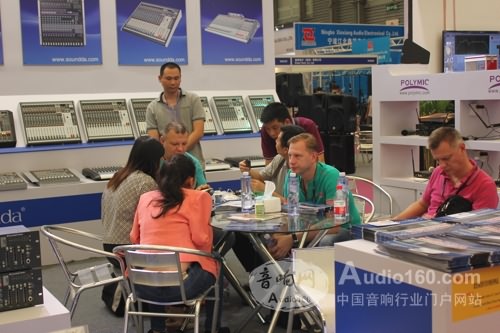 在此次上海音響展上,華電電子展示了其最新生產的調音臺數款,并以精美的外觀,精湛的工藝,贏得了較多采購商的好評。