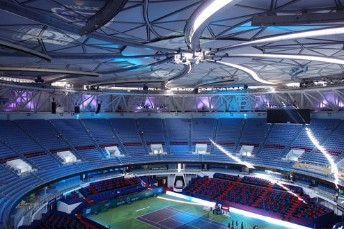賽事舉辦地,上海旗忠森林網球中心擁有15000座位的中央賽場,場館利用孔洞吸聲鋁板降低混響時間,以保證裁判語音清晰度。揚聲器系統被懸掛于橢圓形場館的一端, LEO-M大型全頻線性陣列揚聲器、MICA緊湊型高功率曲線線陣列揚聲器和1100-LFC低頻控制單元等配合Galileo揚聲器管理系統進行優化,結合場地建筑聲學在語音清晰度、覆蓋度等各方面做精準調試,為裁判語音及每場比賽之間的背景音樂提供擴聲。