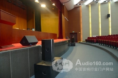 音響擴聲系統采用VCOMTEK VF系列專業音箱,包括2只VF-15主音箱,4只VF-12輔助音箱,2只VF-10返聽音箱,由2臺SUNTRON DPA-450+專業功放,2臺DPA200專業功放驅動,調音臺采用SUNTRON MX12032,周邊處理設備包括DBX231均衡器、DBX 266XL壓限器、SABINE FBX2420反饋抑制器等。