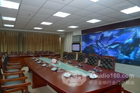 音響擴聲系統采用4只VCOMTEK MS-8全頻會議音箱,由2臺SUNTRON DPA-250專業功放驅動,調音臺采用SUNTRON MX9032,周邊處理設備包括DBX231均衡器、DBX 266XL壓限器、SUNTRON AS1350AT反饋抑制器。