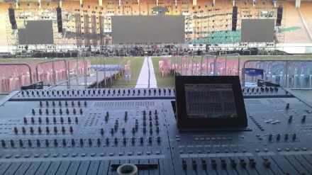 這次PLA譜萊聲用ZSOUND LA212雙12吋線陣列音箱52只、LA110單10吋線陣列音箱18只、SS2雙18吋超低音箱24只、CM15單15吋同軸返送音箱12只等組成面向觀眾型線陣,進(jìn)而發(fā)揮出音響的最大效果,讓聲音更集中,從而讓天河體育場(chǎng)里每個(gè)角落都能體驗(yàn)現(xiàn)場(chǎng)“萬人KTV”的震撼感!PLA譜萊聲還同時(shí)使用了Sennheiser ew 300 IEM G2無線入耳式監(jiān)聽系統(tǒng)及Sennheiser HD280監(jiān)聽耳機(jī)、PM5D數(shù)字調(diào)音臺(tái)進(jìn)行對(duì)現(xiàn)場(chǎng)聲音的調(diào)試與監(jiān)聽,務(wù)求把最接地氣的聲音傳遞給現(xiàn)場(chǎng)觀眾,F(xiàn)場(chǎng)還使用了PLA MS01單通道話筒分配器多個(gè)等等設(shè)備。
