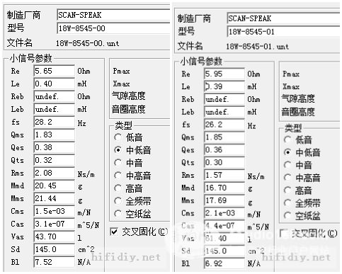 做比對前,先對新舊款8545單元進行了TS參數測試。由于論壇采用LSPCAD設計箱體的居多,為了方便,我將參數按照LSPCAD格式發布: