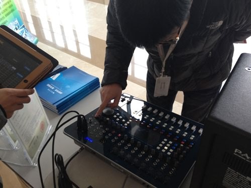參觀人員使用iPad無線操控PAL VARYAG12數字調音臺