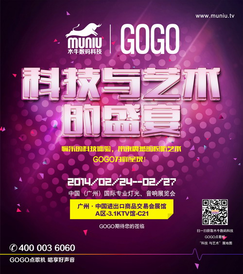 2014.02.24——02.27,中國(廣州)國際專業(yè)燈光、音響展覽會(huì),廣州·中國進(jìn)出口商品交易會(huì)展館,A區(qū)-3.1KTV館-C21,木牛數(shù)碼科技GOGO點(diǎn)歌機(jī)為你精彩呈現(xiàn),期待您的到來!