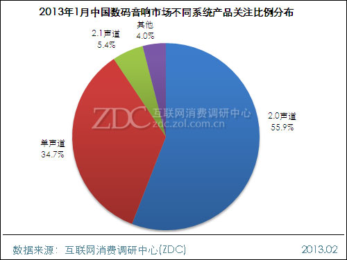 (圖) 2013年1月中國數(shù)碼音響市場不同系統(tǒng)產(chǎn)品關(guān)注比例分布