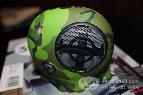 喇叭藏身于印有兩個海盜標志的金屬網罩后,構思巧妙地兼顧了實用性和美觀性,創意十足。星星指示燈,通電之后綠燈亮表示USB和AUX連接, 藍燈亮表示藍牙連接。