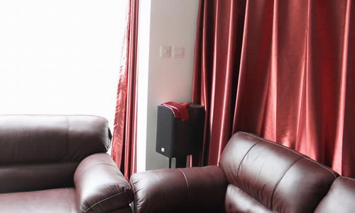 JBL音箱前置音箱全景,幕布采用的是美視大純平120寸!