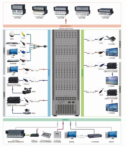 “CROSS MATRIX”是一套配置靈活的矩陣高清信號切換與傳輸系統,簡稱CM模塊化高清切換與傳輸系統。領先的全數字信號處理技術可保證信號失真處理,將最優質的畫面送至顯示終端,能夠實現30米、100米、300米、2公里距離的高清信號切換與傳輸。支持雙向RS-232、雙向IR信號分配切換功能。為各行業的多種視頻及控制信號分配切換處理提供一站式解決方案。
