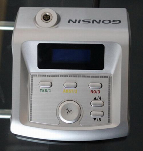 如圖1是公信4200系列(下稱4200)兩個(gè)不同功能的會(huì)議單元。可以看到兩臺(tái)設(shè)備均標(biāo)配有LED顯示屏,可以更直觀、準(zhǔn)確地顯示會(huì)議的狀態(tài)(如顯示請(qǐng)報(bào)到、已報(bào)到、請(qǐng)表決、已表決、申請(qǐng)發(fā)言等信息)、會(huì)議的模式,為操作人員提供了更為便利的操作性。細(xì)心觀察我們還可以發(fā)現(xiàn),單元整體采用了兩個(gè)不同角度的傾斜上表面設(shè)計(jì)。按鍵區(qū)傾斜角度較為平緩,方便與會(huì)者進(jìn)行按鍵操作;而LED區(qū)域的傾斜角度較大,則使與會(huì)者在較為舒適的坐姿下?lián)碛袠O佳的可視角度,符合人體工程學(xué)原理。
