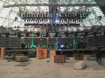 此次演唱會PLA譜萊聲使用了L-acoustics V-DOSC雙十五寸線陣列音箱24只、SB218雙十八寸超低音箱16只、KUDO雙十二寸線陣列音箱18只、115XT HiQ十五寸同軸音箱16只等主音箱;L-acoustics LA48a雙通道專業功放50臺、XTA DP424數字音頻處理器8臺等相關處理器及功放;樂器拾音則用了Sennheiser e904動圈式有線話筒、e901界面話筒、e914小振膜電容話筒11個等。在演唱會整個系統里起到穿針引線的功能的則是PLA MS16、08、01等無源話筒分配器和Sennheiser ew300IEM無線入耳式監聽等等設備,力求要把演唱會做到盡善盡美!這樣正體現了PLA譜萊聲專注于專業,專注于技術的完美追求!
