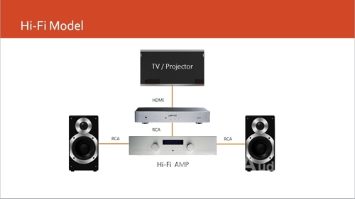 dFiMTM 系統內置海量授權高保真數字音樂內容,用戶在網絡環境下登陸平臺,連接家庭音響設備,同時通過dFiMTM開發的專有UI界面(電視、電腦、手機三屏互動),即可在可視化狀態下極其方便的搜索、試聽、播放和管理個人高保真音樂內容