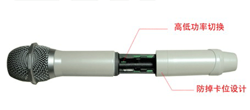 4 、手咪在電池安裝位置內(nèi)置發(fā)射功率切換工能,有8mw和15mw可供選擇。出廠默認15mw,如果實際使用的包房或者環(huán)境面積比較小,可以切換到8mw,這樣會可以降低發(fā)射距離,也可減小對其他無線造成干擾的可能,延長電池連續(xù)使用時間。