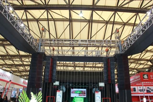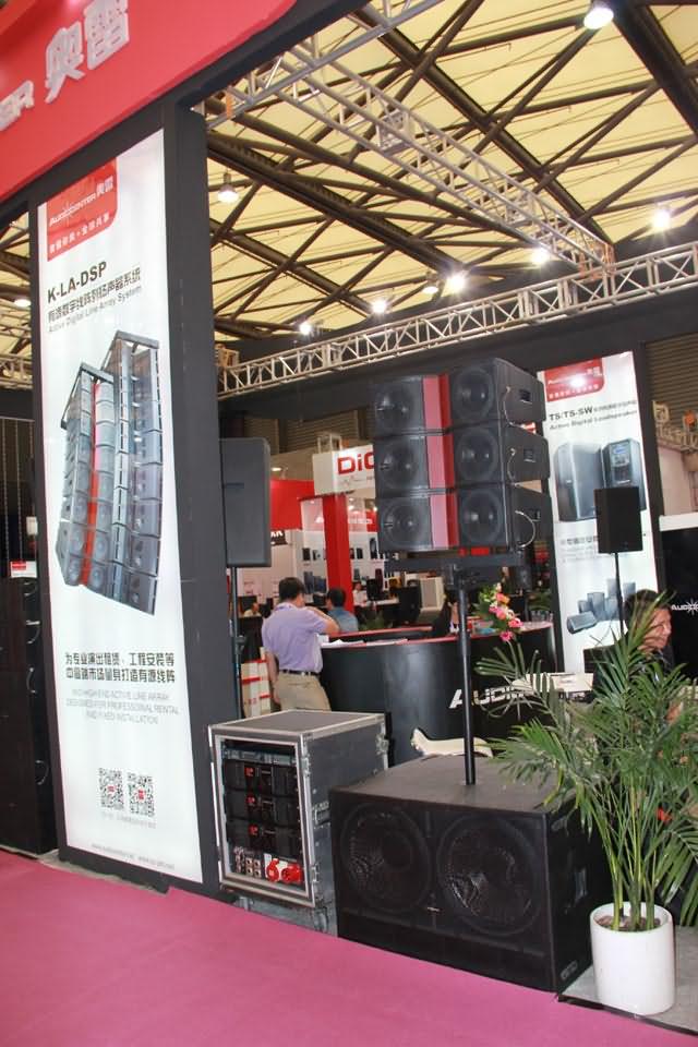K-LA-DSP系列有源數字線陣列揚聲器是奧雷全新推出的新品,在此次展會上首次正式亮相。該系列產品主要應用于中小型劇院劇場、中小型體育場館、多功能廳、宴會廳、高端娛樂、演藝等固定安裝及小型流動演出場所。產品采用丹麥Pascal D類線路數字功放、西班牙Beyma量身定制的系統單元,以及48KHz信號采樣頻率、56bit量化精度的DSP數字信號控制處理器;具有極低的失真度和很小的功率壓縮;其獨創的PTV技術,確保了聲場均勻、指向準確。K-LA-DSP的恢弘震撼之音,給眾多觀展客戶留下了非常深刻的印象。