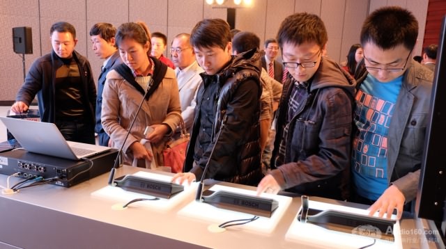 發布會的高潮來自于揭曉此次推出的新品CCS 1000D數字會議系統,而產品經理許培明先生的現場演示環節生動地展示了其主要特性與功能,包括:開箱操作,瞬間將會議產品鏈接入會議系統中,用現場操作對其即插即用作了最好的解詮釋;同時,現場演示了通過iPad登錄該產品的簡潔操作界面,幾個步驟即輕松實現對會議的掌控;與博世高清會議攝像機相配合,將清晰的發言人畫面顯示在多媒體會議設備上,為遠程會議提供有力的幫助等等。通過生動的現場演示,讓與會人員近距離地了解這一新產品的便捷性,增強了會議體驗。許培明表示:“這是一款專為即插即用、快捷高效的會議體驗而設計的產品,非常適用于政府、法院和商務中心等中小型會議場所。