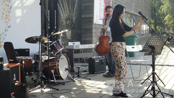 由于綠色音符主舞臺(tái)的演出要下午3點(diǎn)才開始,時(shí)間還早所以我們先去溜達(dá)溜達(dá),在主舞臺(tái)對(duì)面還有個(gè)Sennheiser耳機(jī)的試聽棚,進(jìn)去體驗(yàn)了一番: