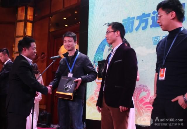 活動中為2014年榮獲“最佳創新企業獎、最佳創意/設計獎、最受歡迎獎”企業進行頒獎,佛山市賓氏集團市場部經理王岳彬作“BINSHI為音樂而生新品Guitar Χ6耳機”介紹。