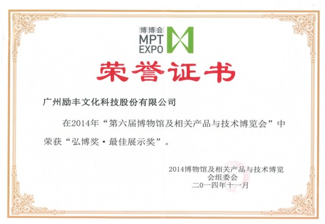 在這里,勵豐文化全面呈現(xiàn)了包括高端進口專業(yè)展柜、展館內(nèi)容展示與管理平臺、I-Guide智能互動導覽系統(tǒng)等在內(nèi)的全流程博物館整體解決方案,以一流的應用技術(shù)和獨特的藝術(shù)形態(tài),吸引了眾多業(yè)內(nèi)專業(yè)人士的關(guān)注和認可,并榮獲本屆博博會“弘博獎·最佳展示獎”。