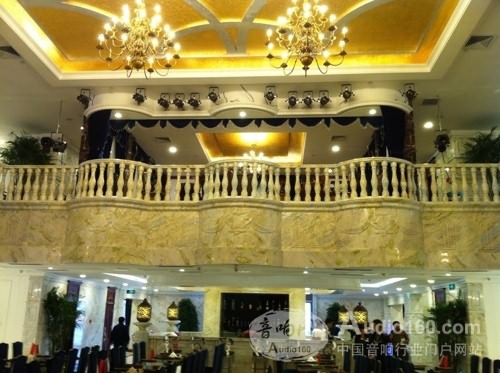 此次音頻工程的首個難點就是俄羅斯餐廳本身的建筑風格為古典歐式,舞臺與就餐區挑空將近9米,墻壁、地面、柱面又都采用大理石材質,整體建聲環境不夠理想。俄羅斯餐廳舞臺近身較短,沒有隱藏安裝的空間,另外餐廳表演的均為純正俄羅斯歌舞,場面激烈歡快。