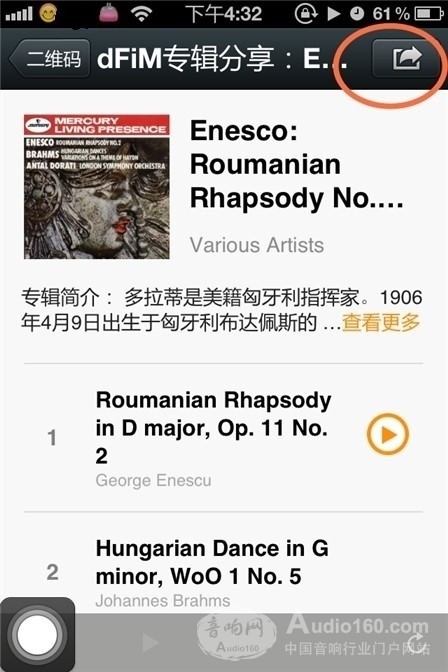 2、 點擊專輯下方的“微信分享”,二維碼便會馬上彈出,只需要微信掃一掃界面馬上彈出