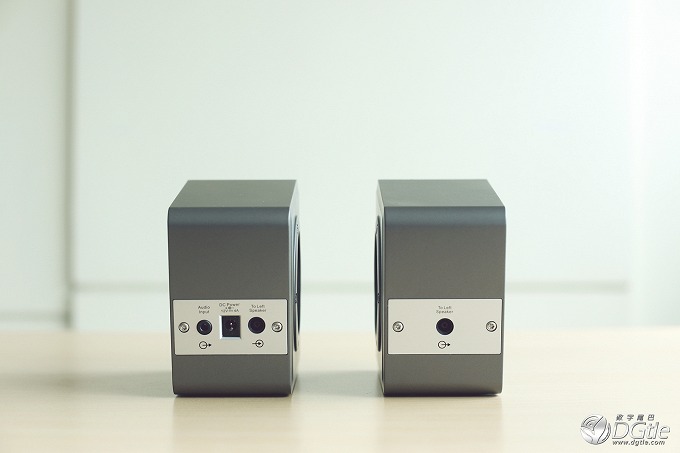 每對音響都分左右聲道,背部的接口也就必定會有側重.右聲道的很簡單,一個"To Left Speaker"接口連接左聲道就夠了.然后在看左邊,一個"Audio Input"用來連接電腦的耳機插孔進行音源輸入,一個"DC Power"用來連接電源,還有一個"To Left Speaker"用來連接...不對啊,這個應該是"To Right Speaker"才對啊,用來連接右聲道的.看來同調在這種細節上還是需要注意的.