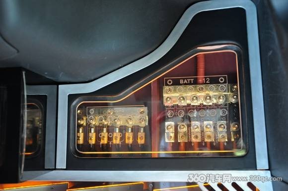 為補(bǔ)足被各種噪音部分遮蓋的低頻,在車尾箱安裝了1個(gè)歌劇世家Operafamily CS 10S 10"低音揚(yáng)聲器,它由1臺(tái)具有充沛輸出功率及驅(qū)動(dòng)力的歌劇世家Operafamily CL-200.2 二路功率放大器來推動(dòng)。推動(dòng)前聲場的Operafamily CL-100.4和推動(dòng)低音揚(yáng)聲器的Operafamily CL-200.2,連同Pioneer DEQ-P01,均被穩(wěn)固地安裝在車尾箱中合適之處;接線整齊規(guī)范可靠,不但可減少相互干擾,也利于日后進(jìn)行檢查與維護(hù),體現(xiàn)了規(guī)范嚴(yán)謹(jǐn)而堪稱系統(tǒng)的工程思想。