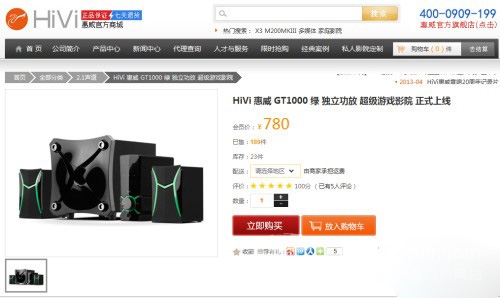 產品購買鏈接:http://shop.hivi.com/products/detail.aspx?pid=100000208683485