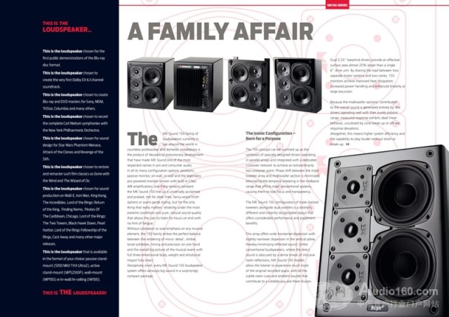 M&K Sound是一家擁有近40年歷史,全球知名的揚(yáng)聲器系統(tǒng)制造商。自70年代崛起于專業(yè)錄音界,他們的設(shè)計(jì)理念也為業(yè)界創(chuàng)造了很多新標(biāo)準(zhǔn)。在錄音技術(shù)方面,M&K Sound成立了全世界第一個(gè)LP直刻技術(shù)錄音室,為全美最早投入數(shù)碼取樣錄音的研究,并發(fā)行全美第一張直錄CD。同時(shí)。M&K Sound揚(yáng)聲器為多聲道及藍(lán)光領(lǐng)域奠定了監(jiān)聽標(biāo)準(zhǔn)。杜比及THX在初期制定多聲道音效格式時(shí),指定M&K Sound揚(yáng)聲器為必備的監(jiān)聽系統(tǒng),因?yàn)镸&K Sound的設(shè)計(jì)理念與這些多聲道音效格式不謀而合“將最真實(shí)的聲音完美重現(xiàn)”。