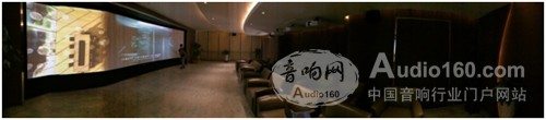 營銷中心二層主要展示各項技術、選用材料等的項目細節,擴聲區域包括放映廳和互動展臺兩部分。放映廳采用7.1聲道環繞立體聲,擴聲系統設計中充分考慮了放映廳的內部建筑結構以及裝修風格,最終為其選配了功率大、箱體小巧的音箱,且便于隱藏。系統的左、中、右聲道都采用HK Audio Elements系列E 435高音單元,另配用同系列的E 110 Sub A和E 110 Sub低音音箱,安裝于透聲投影幕后,同品牌的IL 82全頻音箱則用于環繞聲道,完成放映廳的擴聲。