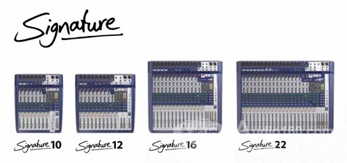 Signature系列包含10通道、12通道、16通道與22通道4款型號,以及兩款Signature Multi-Track多軌錄音混音控制臺:Signature 12 MTK,Signature 22 MTK。