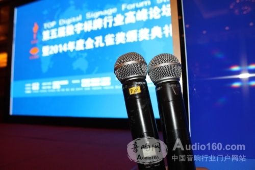 論壇企業高峰對話期間,參與高峰論壇討論嘉賓手持舒爾SLX2麥克風激辯新媒體時代下商用顯示市場的變革,就時下裸眼3D、4K、觸摸、戶外、云、大數據、物聯網、透明顯示、人機交互等暢所欲言;在第二場的交鋒中,就數字標牌行業多元化發展下的新型商業模式。如近年來大熱的O2O、眾籌等熱點問題共同研討,相互切磋,為數字標牌業的發展出謀劃策、建言獻計。