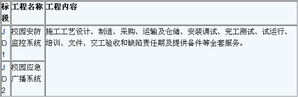 本次招標共劃分為2個標段,主要工程內容見下表: