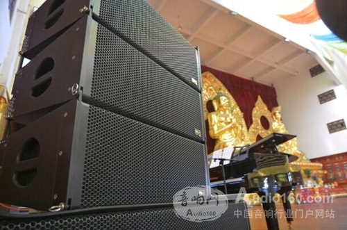 強大的硬件設備是一切活動的保障,為滿足大廳堂內擴聲效果達到國家廳堂標準,同時兼并各種文化交流活動擴聲功能,寶華寺邀請云南省音頻專家趙教授及丁老師同諾法公司工作人員與PRO DG SYSTEMS音頻工程師們同時來到寶華寺,根據寺廟獨有的建筑風格及建聲環境作出了完美的詳細整體設計方案,系統采用西班牙PRO DG SYSTEMS揚聲器GT 2X12L.A 雙12線陣列12只 及GT2X8 L.A線陣系列16只、廳堂內補聲還采用了PRO DG專利技術單6.5寸陣列揚聲器IT 1M6 L.A 22只,舞臺上使用了12只M 12全頻返送系列音箱。功率放大器采用LAB GRUPPEN FP10000Q 共計12臺,周邊系統選用APEX Intelli-X2 48處理器4臺,擴聲使用森海塞爾EW 500-965 G3一批, 同時配合MIDAS M32數字調音臺一張等等。