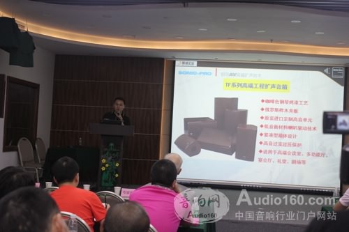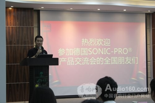 景雄公司技術總監尹總主要就德國SONIC-PRO®音響新產品進行介紹,本次介紹的新產品主要分為四大類:音箱、數字調音臺、網絡傳輸、處理設備等。