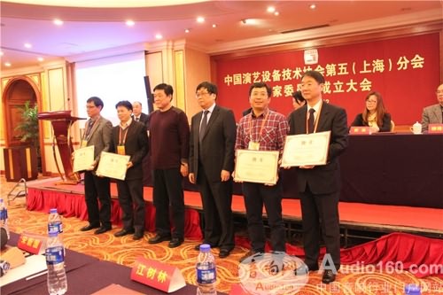 大會(huì)由黃增光主持。首先,由趙同華宣讀《中國演藝設(shè)備技術(shù)協(xié)會(huì)第五(上海)分會(huì)專家委員會(huì)成立的決定》、由周春志宣讀《關(guān)于聘請(qǐng)中國演藝設(shè)備技術(shù)協(xié)會(huì)第五(上海)分會(huì)專家委員會(huì)成員的決定》。隨后,分別為專業(yè)委員會(huì)專家、顧問,以及舞臺(tái)機(jī)械專業(yè)組、專業(yè)燈光組、專業(yè)音響組、視頻多媒體專業(yè)組、舞臺(tái)美術(shù)專業(yè)組、劇場(chǎng)建設(shè)與工藝組的專業(yè)委員頒發(fā)聘書。