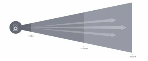 強(qiáng)聲定向裝備工作時發(fā)射一個波束角度為30°指向性聲波,可以廣播清晰的語音信息和高強(qiáng)度的警示音(實(shí)時語音或預(yù)錄語音均可),聲音傳輸距離最遠(yuǎn)達(dá)到6000米,而且聲音高度定向:正向區(qū)域內(nèi)聲音清晰、衰減低,后向和周邊區(qū)域聲音衰減迅速,干擾小。