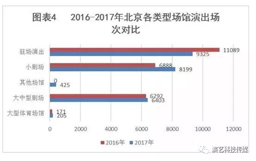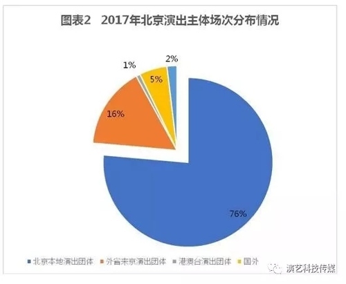 數(shù)據(jù)顯示, 2017年內(nèi)地文藝表演團(tuán)體及個(gè)人(含外省市)在京演出了22598場(chǎng),占演出總場(chǎng)次的92.0%,觀眾數(shù)量達(dá)875.9萬(wàn)人次,票房收入為11.20億元。其中北京本地文藝表演團(tuán)體表現(xiàn)更為活躍,演出達(dá)18762場(chǎng),占演出總場(chǎng)次的76.4%,比去年同期17837場(chǎng)增加5.2%。