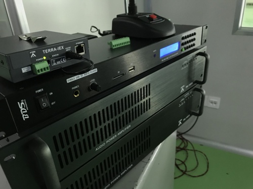 為了能提高廠區(qū)各部門的工作效益,為了實現(xiàn)廠區(qū)各部門的信息網(wǎng)絡互通,及時下發(fā)通知等,定時播放上班簽到、工作內容提醒、下班通知等功能,宏發(fā)股份采用亞提斯(ATEIS)的TERRACOM網(wǎng)絡廣播對講系統(tǒng)。目前一期項目采用7臺TERRA-IEX網(wǎng)絡終端,每個部門安裝1臺,同時每個部門配置1套TERRA-MANAGER廣播管理軟件。實現(xiàn)對部門的分區(qū)廣播以及定時播放語音,在員工午餐等休息時間可自動播放服務器存儲的MP3背景音樂。音箱采用ATEIS(亞提斯)的高保真吸頂音箱CCS5/T以及壁掛音箱JD40/T。