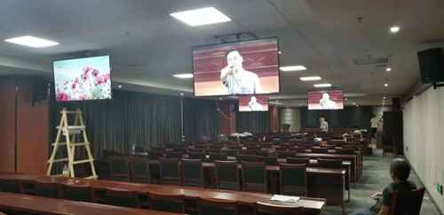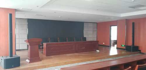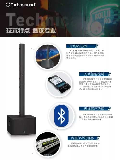 現場應用了兩組iNSPIRE系列中的ip3000線陣列智能化有源揚聲器分別放置在舞臺上的左右兩側作現場的主擴聲音箱,ip系列線陣列全頻揚聲器可以分開拆散,體積細小,搭建的時候也十分方便和快速,適合會議室,禮堂等場合使用,而且外加藍牙立體聲無線播放功能,iphone/ipad無線控制客戶端簡單便捷容易操作。而場內兩側墻體上吊掛6只ip82音箱作現場的輔助擴聲。現場擴聲系統控制由一臺英國Soundcraft LX10 24路多通道調音臺控制,以及美國PHONIC周邊產品,實現音視頻智能化會議控制模式。