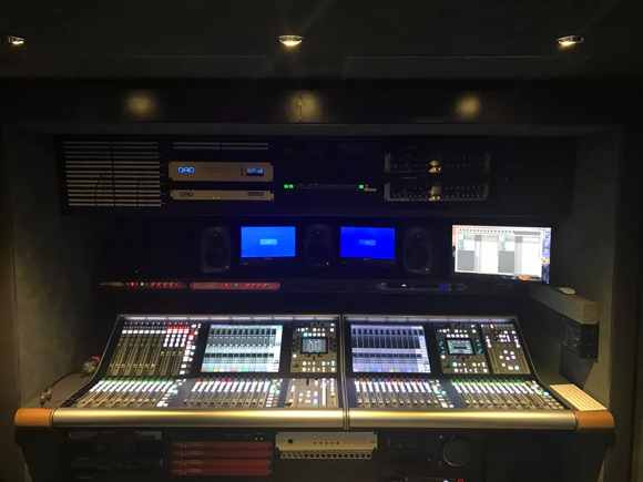 傳新科技為騰訊轉播車提供了一張SSL Live 500 Plus調音臺和一張L300擴展臺面,使用Yamaha QL1作為備份,以及2臺Digital Audio Denmark的AX32數字音頻矩陣作為IP與MADI、AES等基帶信號的橋接路由單元。另外還有Genelec 8330 APM 5.1環繞聲監聽系統搭配7350 APM超低音、Sonifex RM-4C8參考監聽、Pro Tools HDX 2|Ultimate、Waves混音工具、TC Electronics Music 6000 MKII效果處理器、搭配2臺Universal Audio Apollo 16B以及UAD-2 Octo Ultimate DSP處理器作為傳統錄音設備的硬件模擬器、Studio Technologies 5202 Dante耳放等設備,并以AoIP的方式將信號介入整個系統,以此將傳統直播系統帶向新的高度。