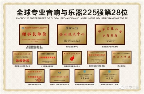 音王向來以振興民族音響為產(chǎn)業(yè),打造民族音響品牌為己任,如今,音王在國內(nèi)外市場美名遠(yuǎn)播,綜合競爭力不斷提升,在全球音響與樂器行業(yè)225強(qiáng)綜合實(shí)力排名中排名第28位,成為中國民族品牌的驕傲。