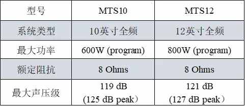 該系列包含兩款型號(hào):MTS10(10寸全頻音箱)和MTS12(12寸全頻音箱)
