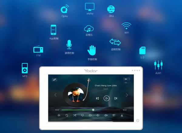 豪華7寸大屏一體機,雙分區設計,同時滿足兩個房間的音樂需求。創新魔幻體感控制、智能語音控制,全新體驗。