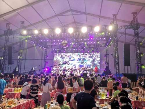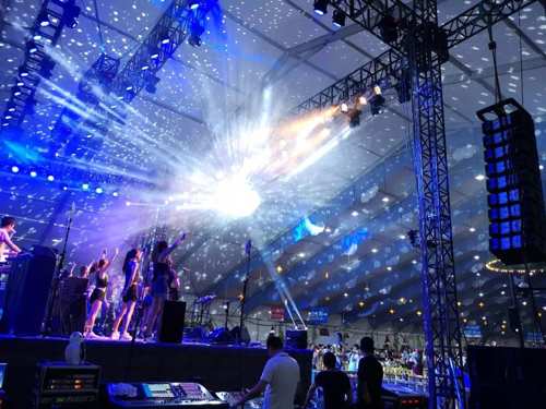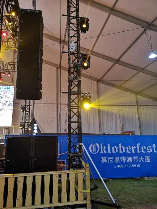 本屆啤酒節的現場擴聲系統依舊采用來自由廣州銳聲旗下代理品牌德國TWAUDiO垂直線性陣列揚聲器系統,應用18只Vera36垂直線性陣列音箱,12只S33超低,12只M12作為返聽,整個系統由17臺K3DSP功放驅動;還用了奧地利AKG DMS800參考級數字無線話筒和PHONIC PAA6音頻分析儀 ,英國Midas PRO1&PRO2數字調音臺等。